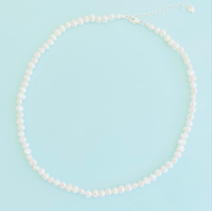 Discover the captivating charm of natural elegance with this 4mm Baroque White Freshwater Pearl Necklace, expertly crafted in sterling silver. Each baroque pearl is uniquely shaped, reflecting the beauty of individuality and the organic grace found in nature. Their soft, iridescent lustre catches the light beautifully, offering a radiant finish that feels both timeless and contemporary.