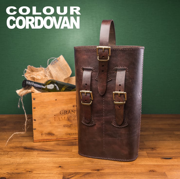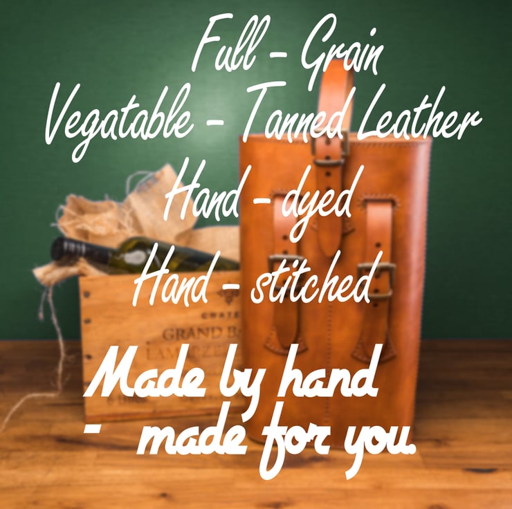 Each piece is cut, saddle-stitched, and finished by hand in my UK workshop, with solid brass fittings for strength and longevity. The structured design keeps your bottle secure, while the leather handle ensures comfortable carrying.