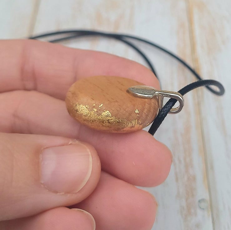 Beechwood pendant with 22k gold leaf front