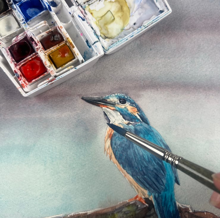 Painted in quality watercolours and titled Kingfisher Blues.
