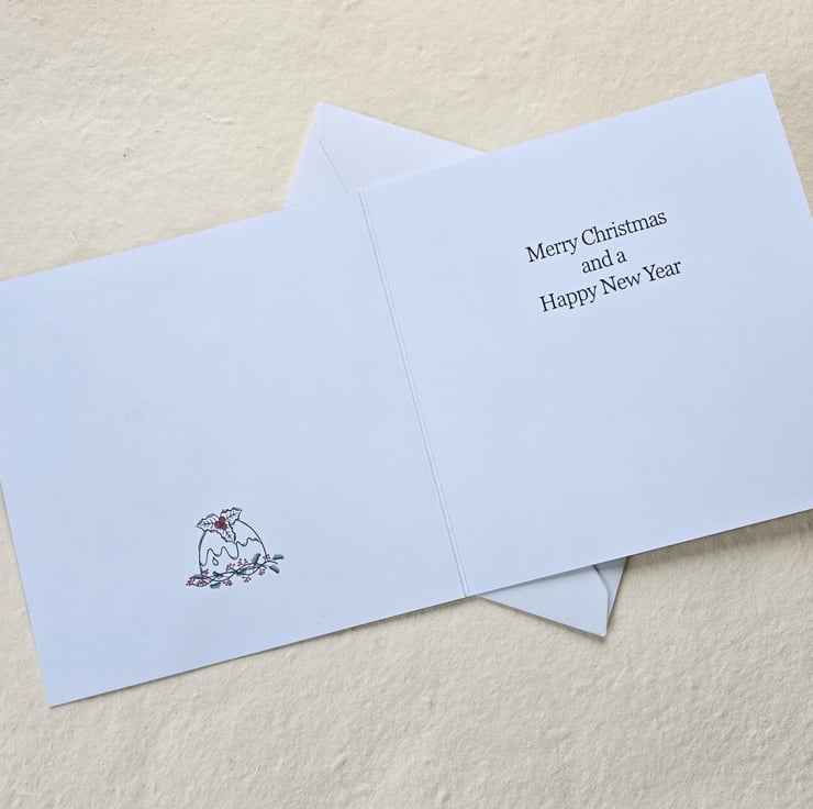 This card was inspired by the realisation that some of the very best things about the holiday season—like a rich, flaming Christmas pudding—are improved exponentially by a generous splash of something strong.