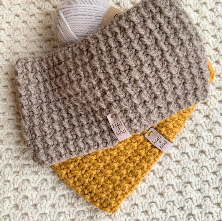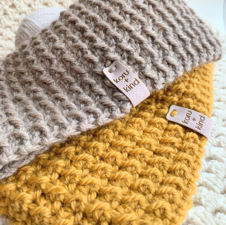 Crocheted with a blend of 65% Wool and 35% Alpaca Aran weight yarn giving them a nice soft squishy thickness. The stitch pattern used creates texture and gives it a modern look with the cross over twist on the front.