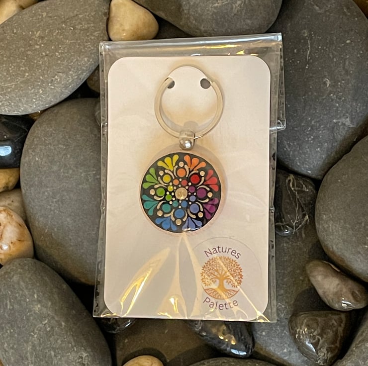 This Mandala keyring has been hand painted by me under the artist’s name of Natures Palette.