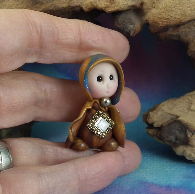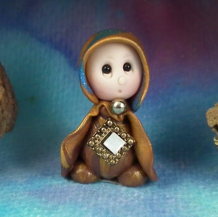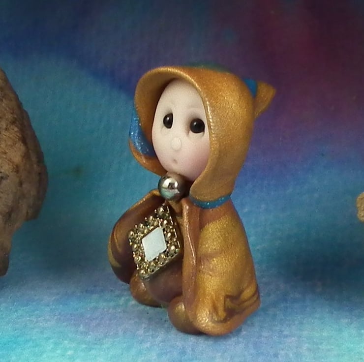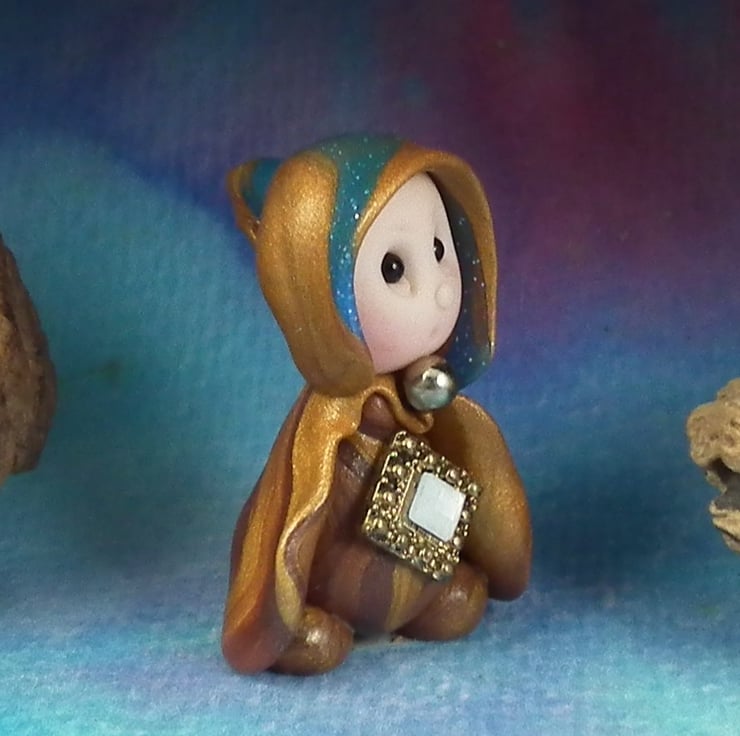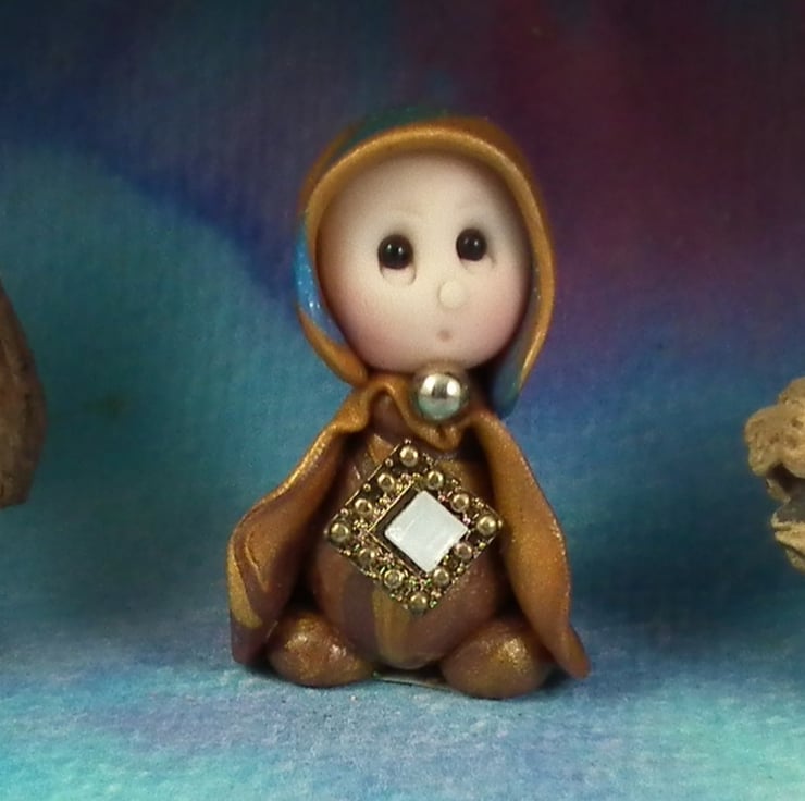 This is a 'one of a kind' creation having been entirely handmade without the use of moulds here at my studio on the Sussex Coast. Modelled with artist blend polymers, blushed before sealing with lacquer, Lotsy has sparkling black onyx eyes and golden robes. Lotsy the Garden Gnome is just one and a half inches tall.