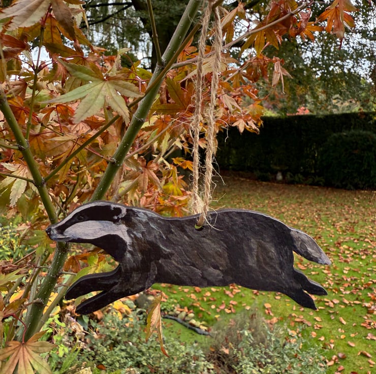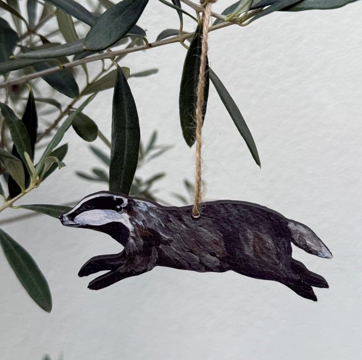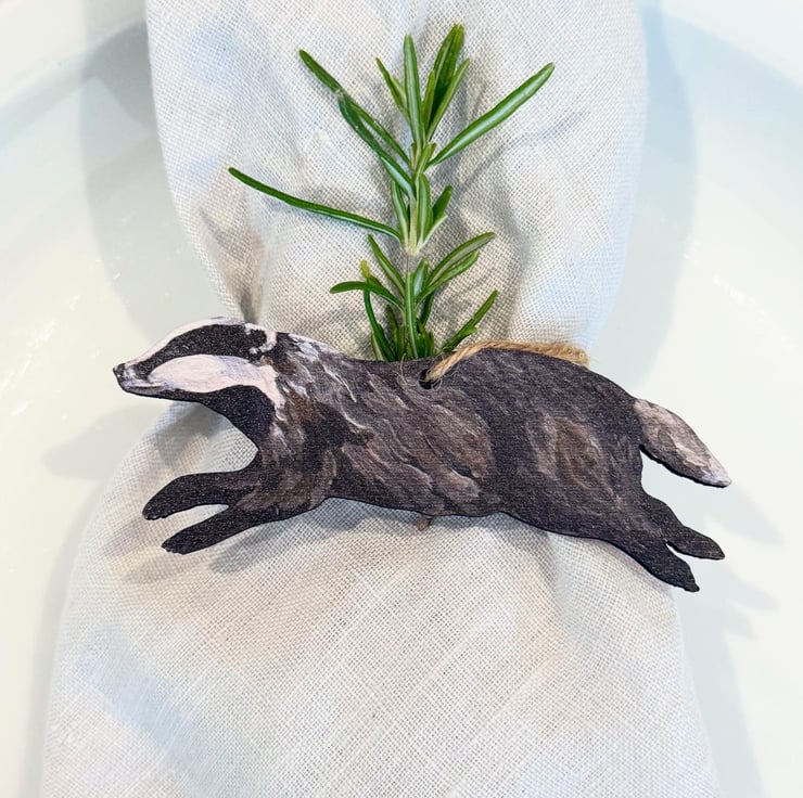 UV printed and laser cut decoration with Kelly’s unique running badger design.