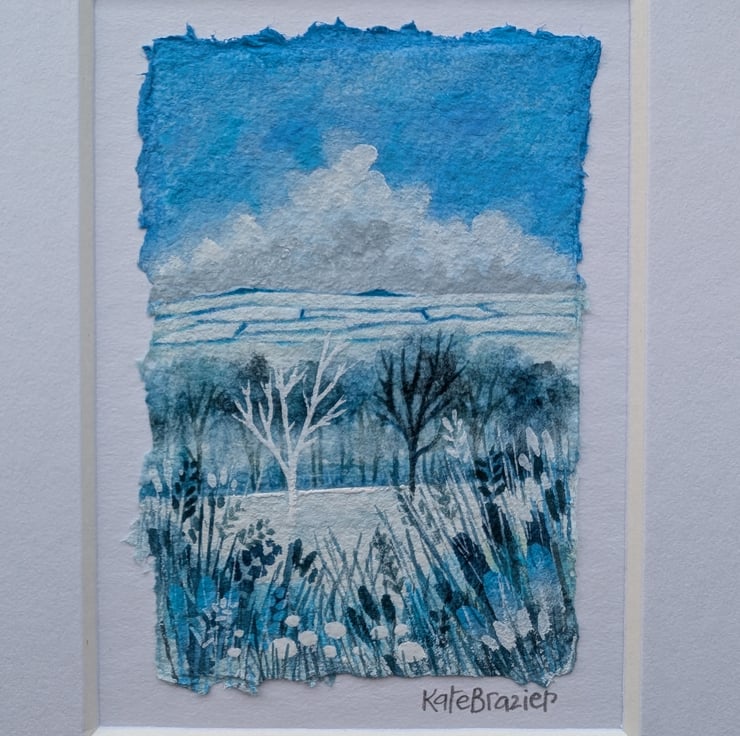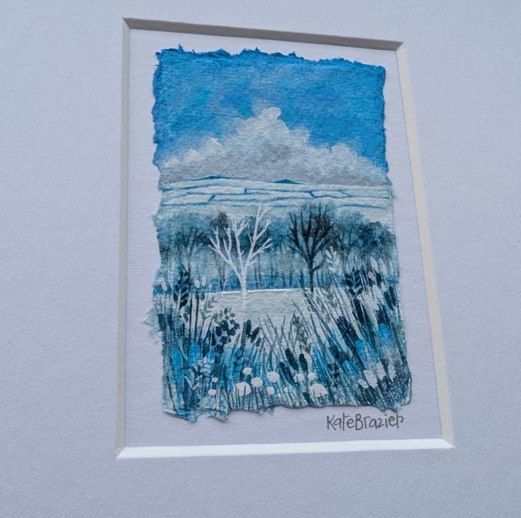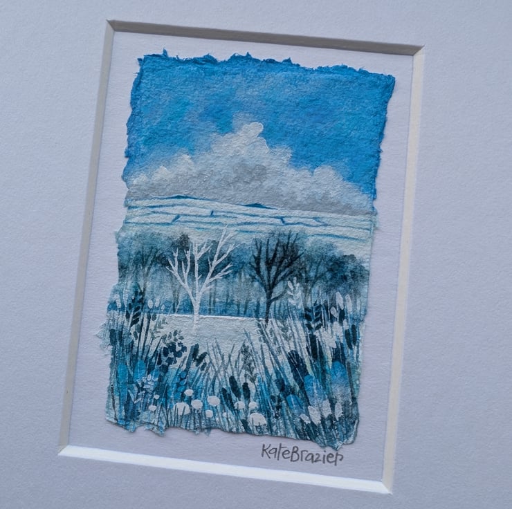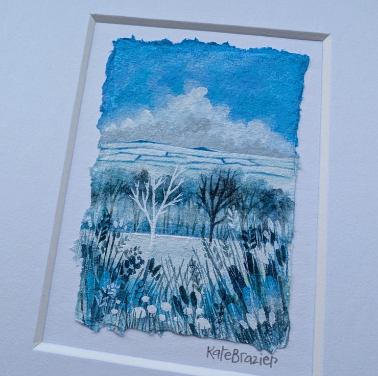 This piece is created using gouache paint on handmade Khadi paper, it has been worked into with water soluble pencils and Luminance colourfast pencils. It is then held in place with artist quality Neutral pH adhesive and float mounted in a custom mount.