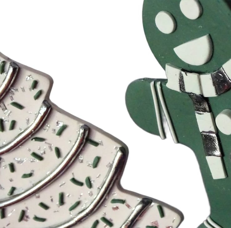 These charming decorations are handcrafted from polymer clay in rich colours and finished with touches of silver for that extra holiday sparkle.
