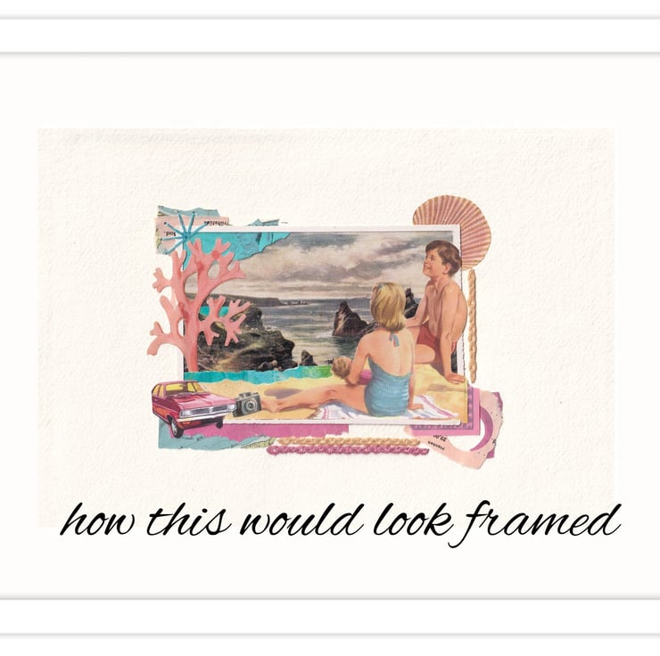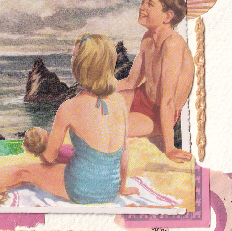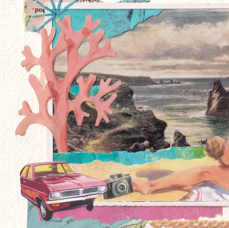 A4 handmade collage, on deckle edged handmade paper, using vintage paper, postcards and ephemera, with hand embroidery (UNFRAMED)