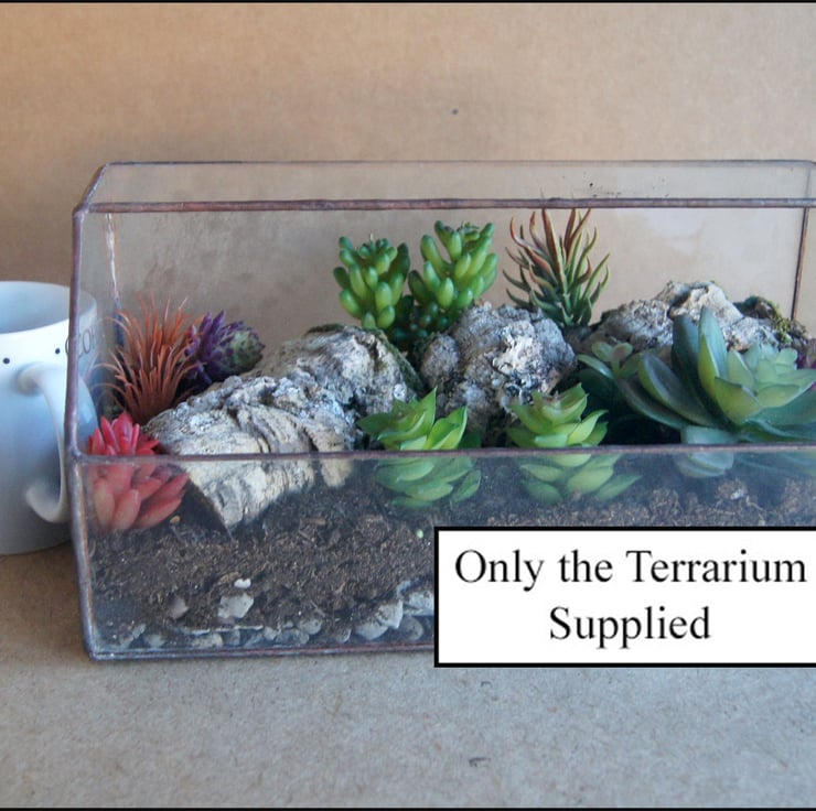 Be aware that these are made using recycled glass, So will have some scratches and marks on the glass due to past use. Using weathered glass, some glass may also have a mottled look. which can't be removed. As a one-off design, these well may also include minor imperfections. On saying all this I wouldn't be selling unless I was happy with the finished terrarium.