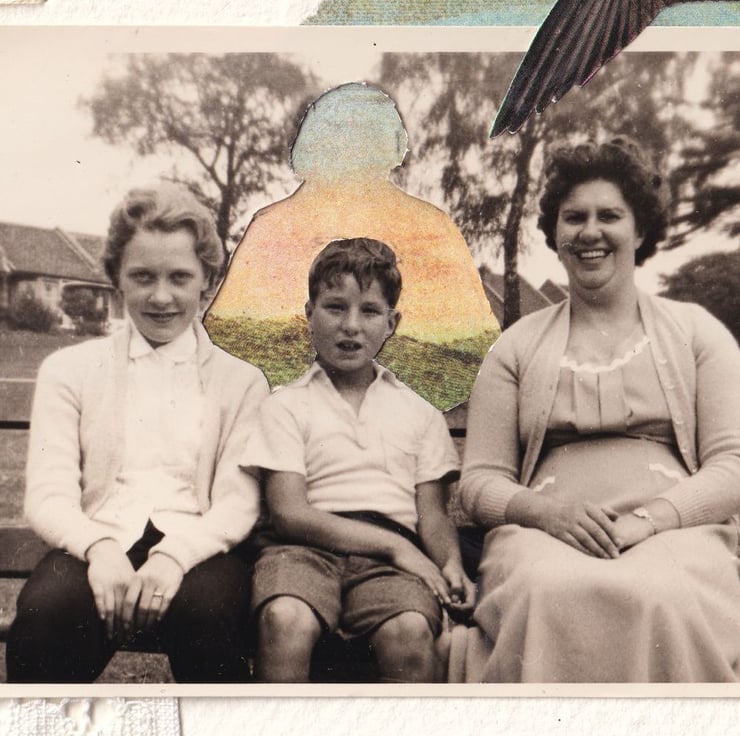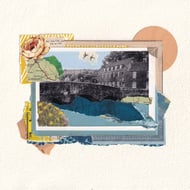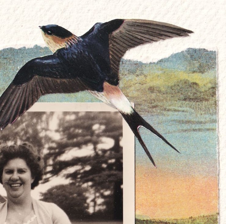 A thoughtful and poignant addition to your home in this lovingly created, vintage collage. Each collage is mounted on handmade, deckle-edged paper, adding to the unique nature of the piece.