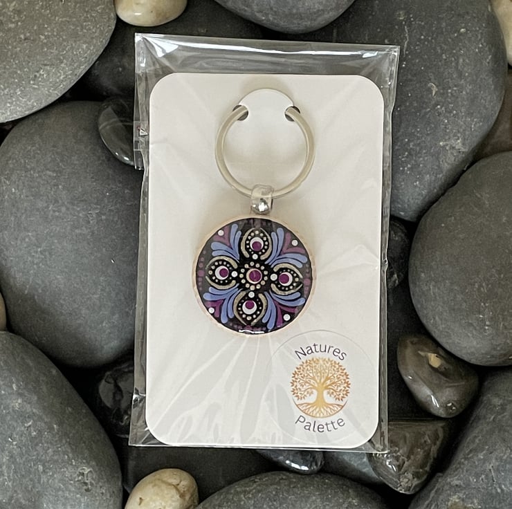 This Mandala keyring has been hand painted by me under the artist’s name of Natures Palette.