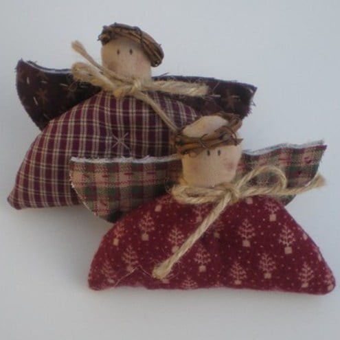 Cute mini angel with fabric body and wings. Finished with a jute bow and grapevine halo. Bottom width = 10cm.
