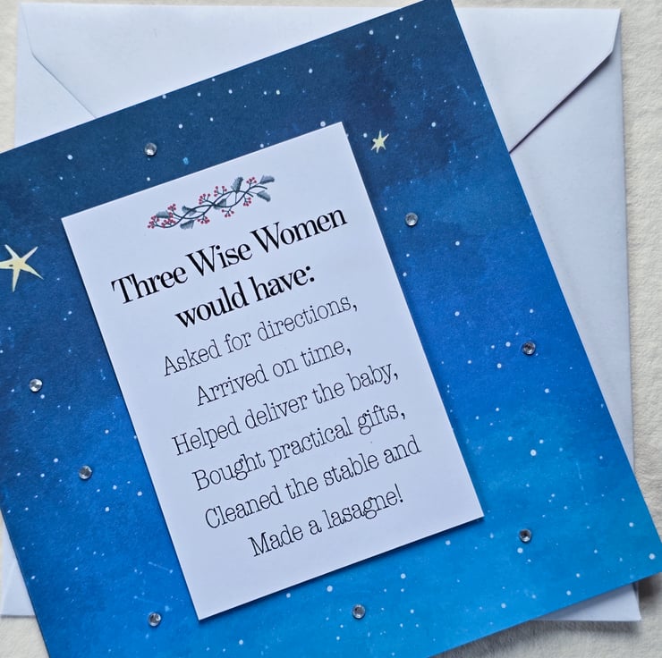 "Three Wise Women would have: Asked for directions, Arrived on time, Helped deliver the baby, Bought practical gifts, Cleaned the stable and Made a lasagne!"