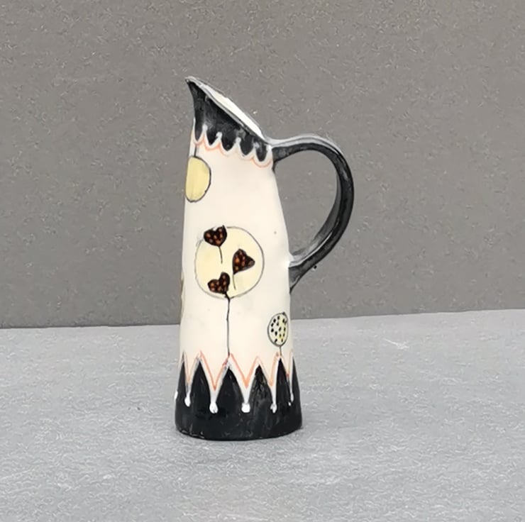 Stoneware jug with hand-painted design by Kathleen Hepworth
