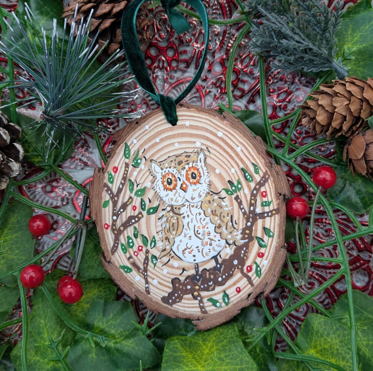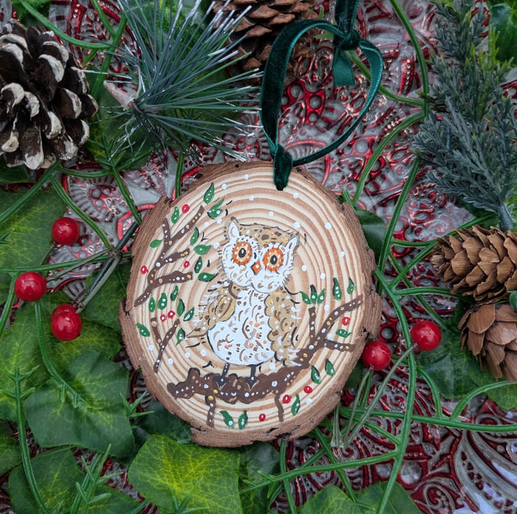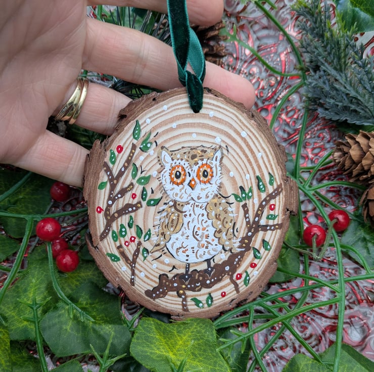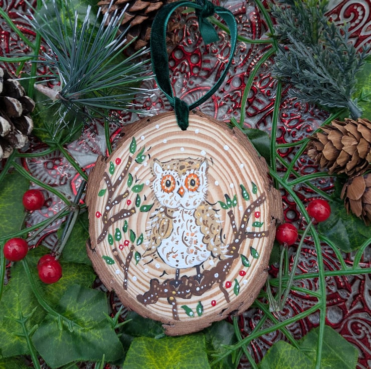 This beautiful hand-painted Owl wood slice decoration is perfect for adding a decorative touch to your Christmas Tree or home all year round.