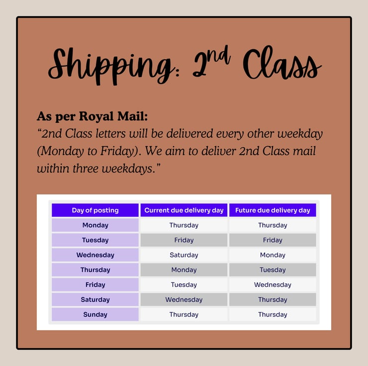 Please note that delivery dates provided by Etsy and Royal Mail are estimates and are not guaranteed.