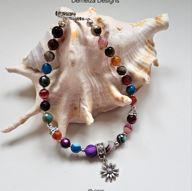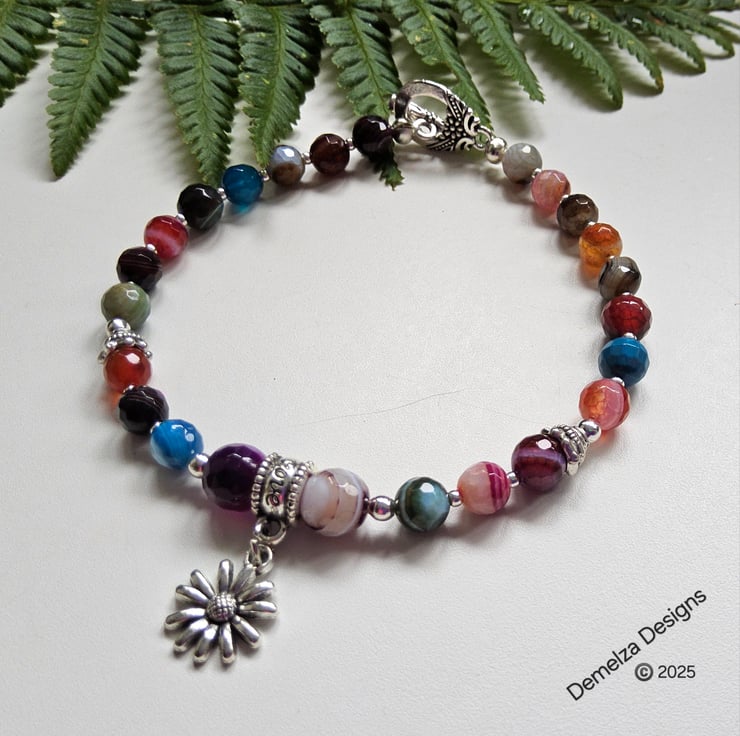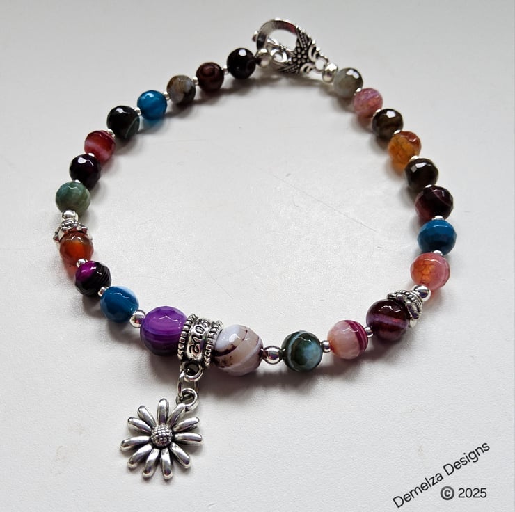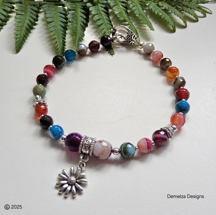 This lovely genuine stripey agate bracelet has been designed and hand crafted in Cornwall by Demelza Designs for those seeking quality, individuality and a colourful unique gift for any occasion or as a treat to themselves.