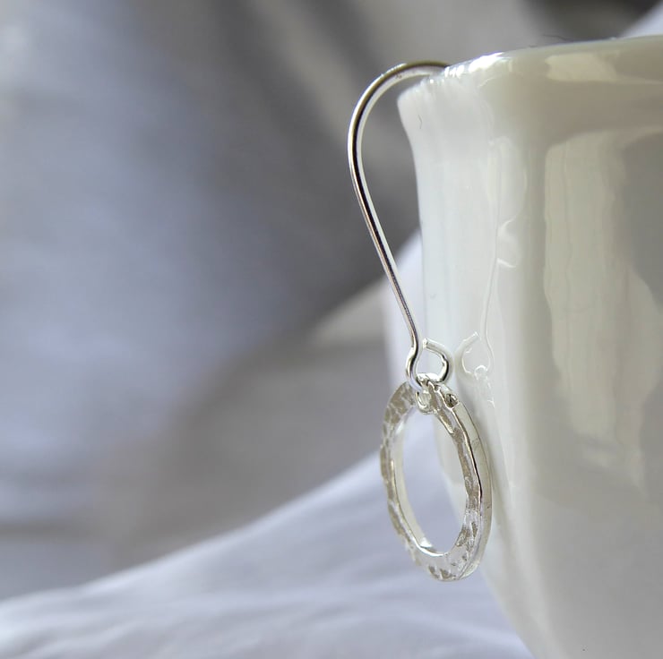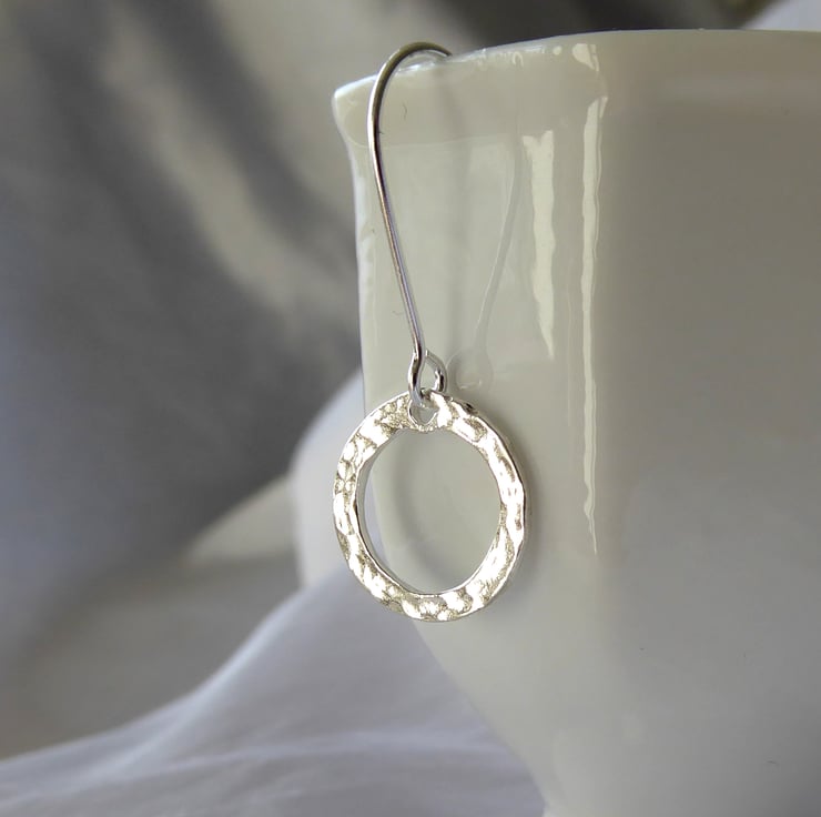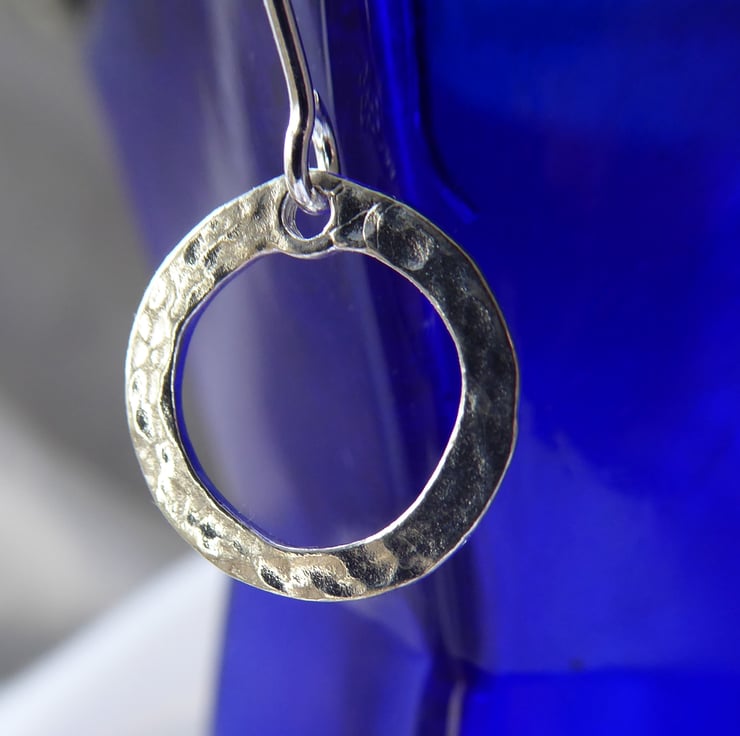 Single Sterling Silver Christmas Wreath (Hammered Hoop)  Earring