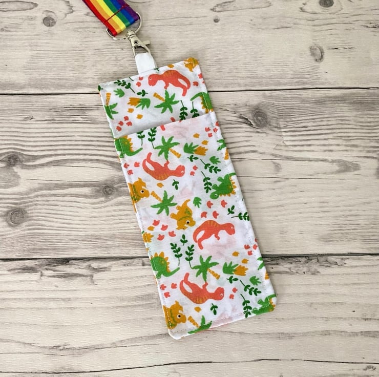White Dinosaurs Fabric. Double Sided Glasses and Pen Holder for Lanyards.