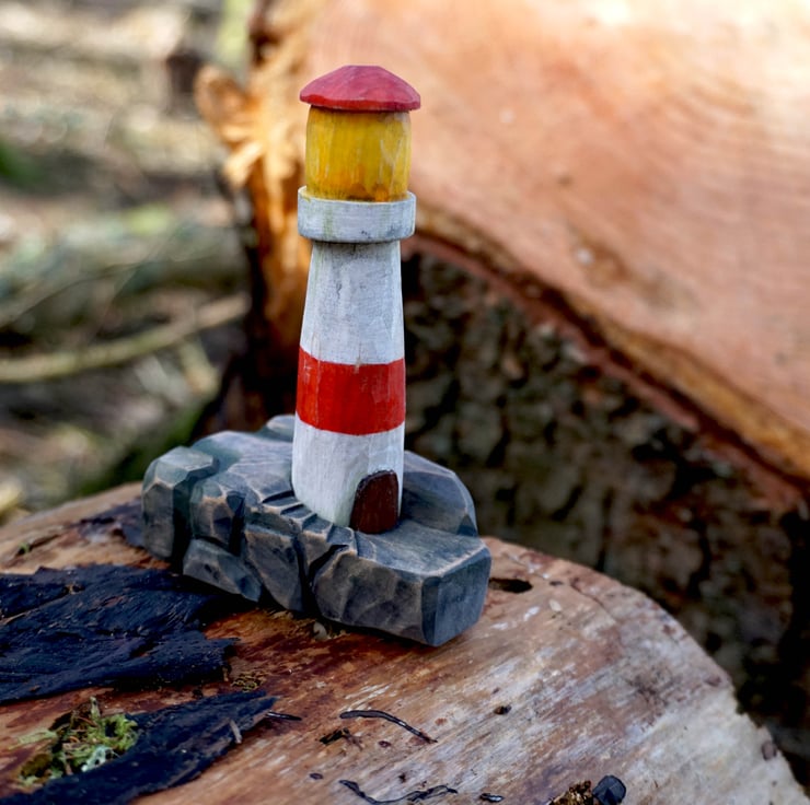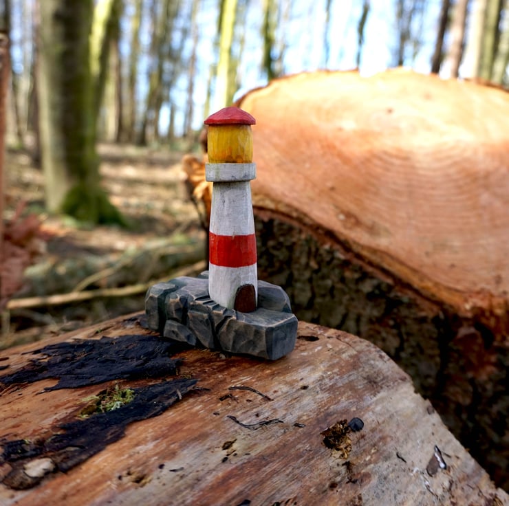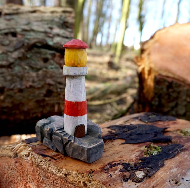Beautiful hand-carved wooden lighthouse made from basswood, crafted with care and attention to detail. A unique piece of nautical décor, perfect for coastal homes, gifts, or collections.
