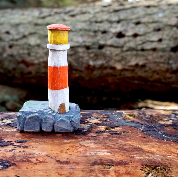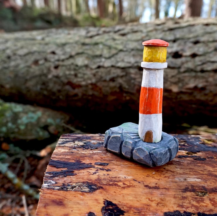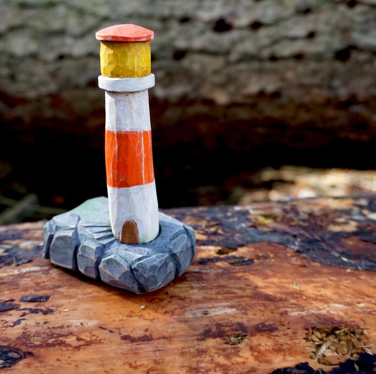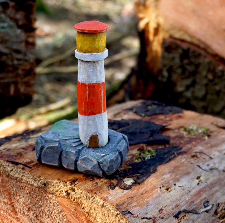 Beautiful hand-carved wooden lighthouse made from basswood, crafted with care and attention to detail. A unique piece of nautical décor, perfect for coastal homes, gifts, or collections.