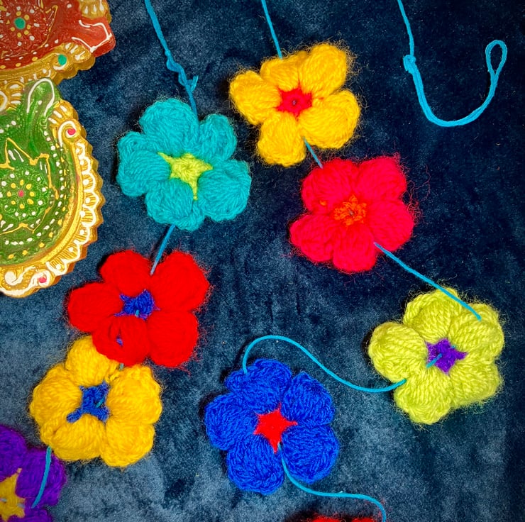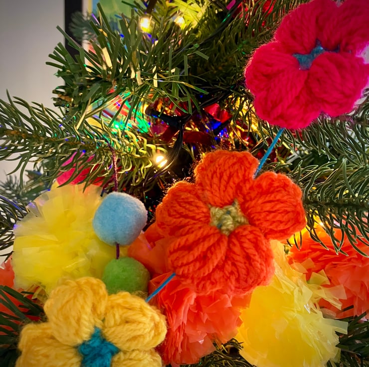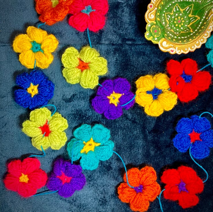 A joyful garland of hand-crocheted flowers to brighten up your home, tree, or festive display. Each garland is lovingly made using soft yarns in a mix of cheerful colours — a modern twist on classic crochet.