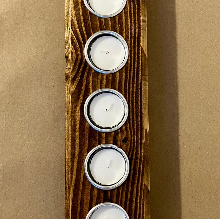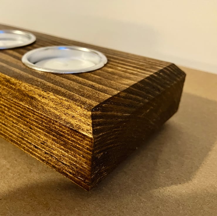 Each holder is finished by hand with your choice of either Jacobean Wax or Orange Oil with Carnuba Wax, fitted with metal inserts for safety, and includes free tealights ready to use