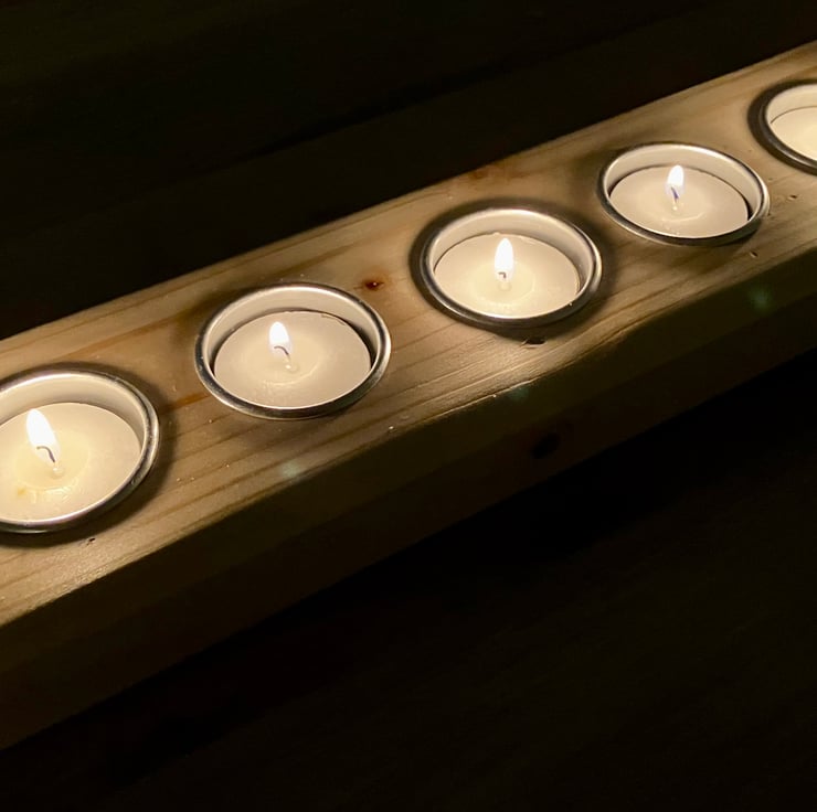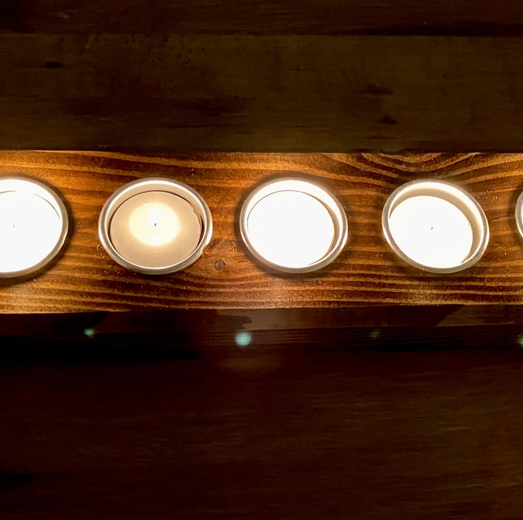 Handmade from solid repurposed / upcycled wood, this rustic tea light holder brings natural warmth and quiet character to any home.