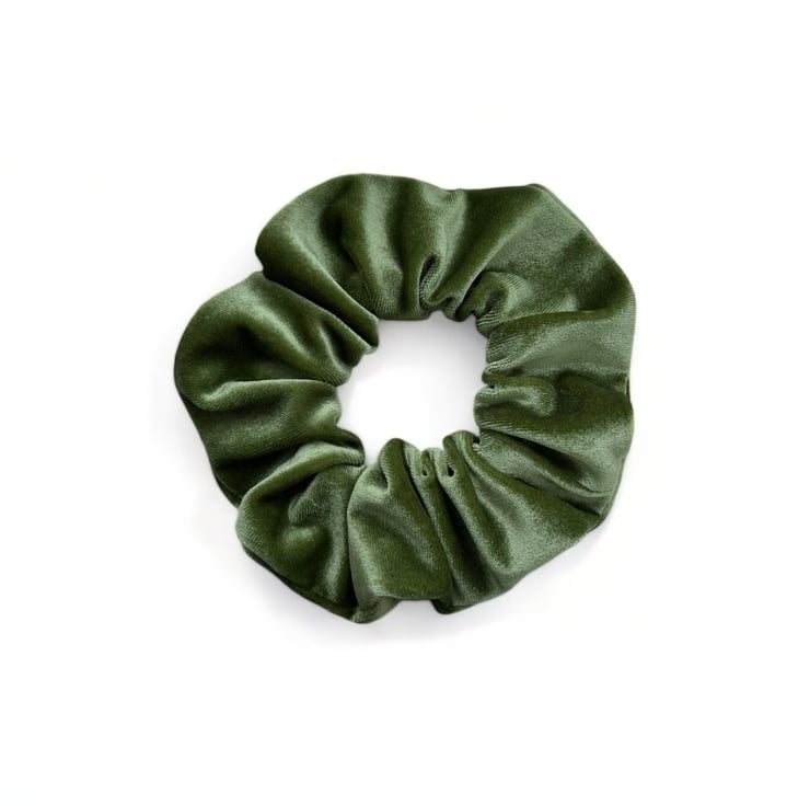 Velvet scrunchie in Apple Green, handmade by me.