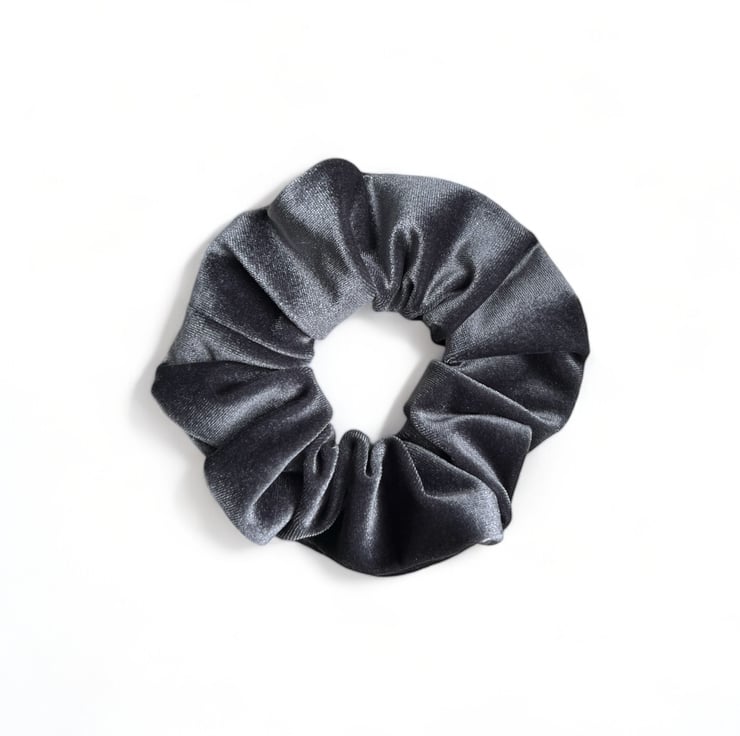 Velvet scrunchie in Grey, handmade by me.