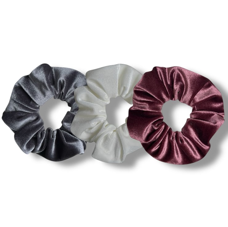 Set of 3 - Grey, Ivory & Grape Velvet Scrunchies - Large