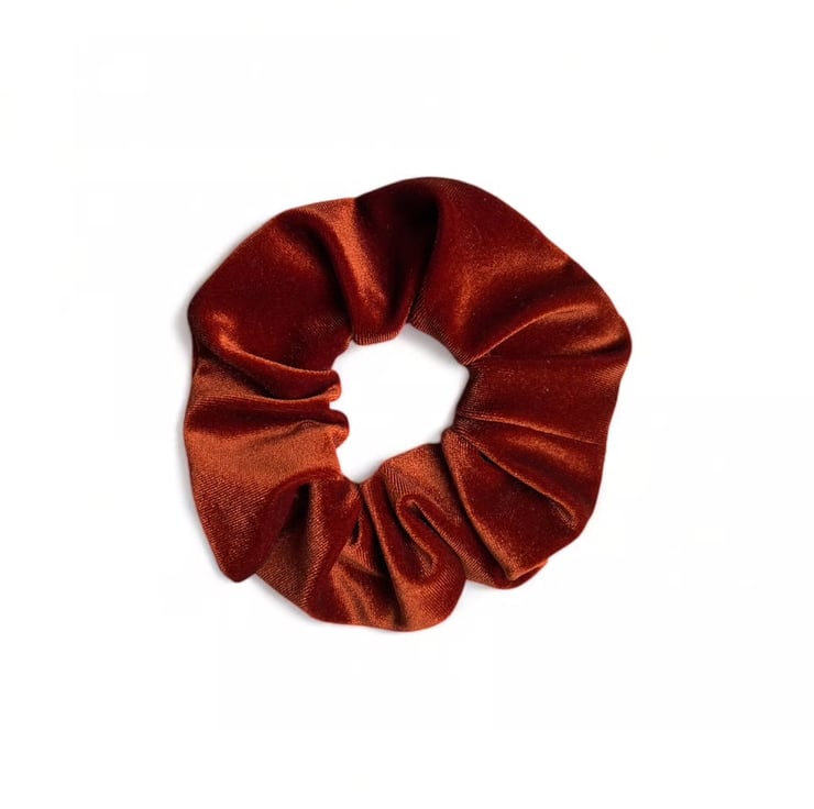Set of 2 velvet scrunchies in Mustard & Burnt Orange, handmade by me.