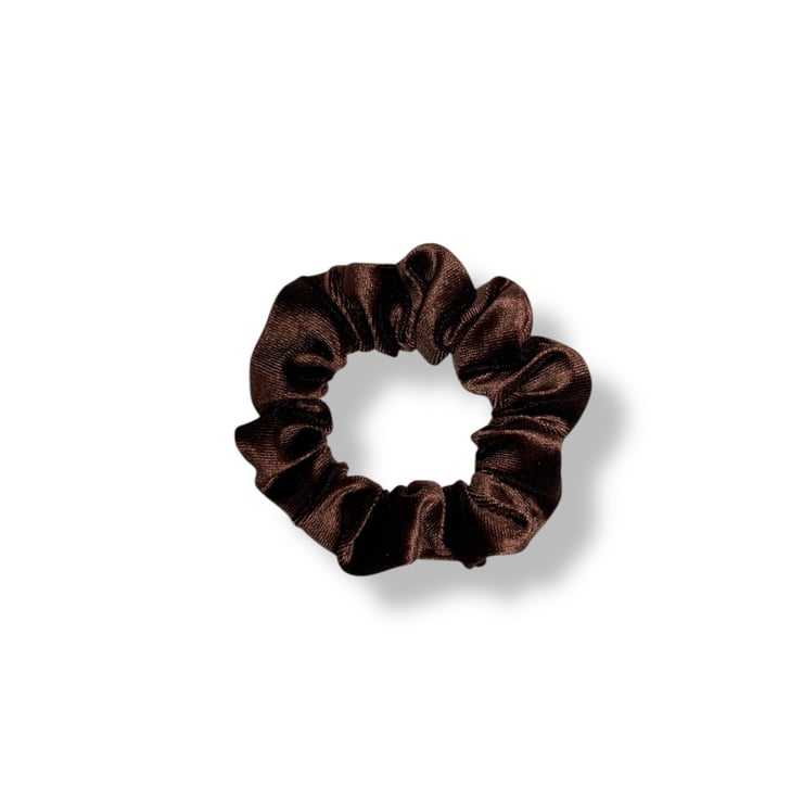 Set of 2 velvet scrunchies in Chocolate & Rose Pink, handmade by me.