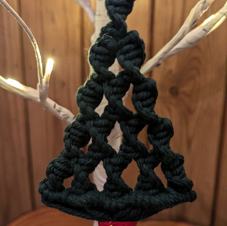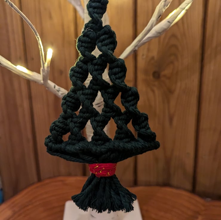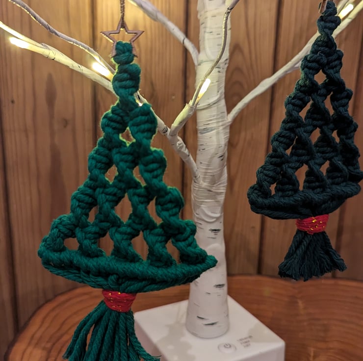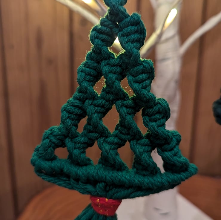 This Christmas tree decoration comes in 2 variations of colour - mid green and dark green and is perfect for hanging on your Christmas tree. Please see seperate listing for the mid green option. Each one is made from 100% cotton macrame cord and features an attractive spiral design.