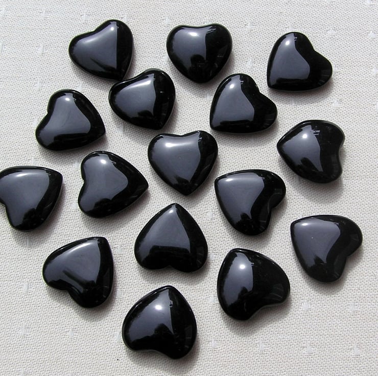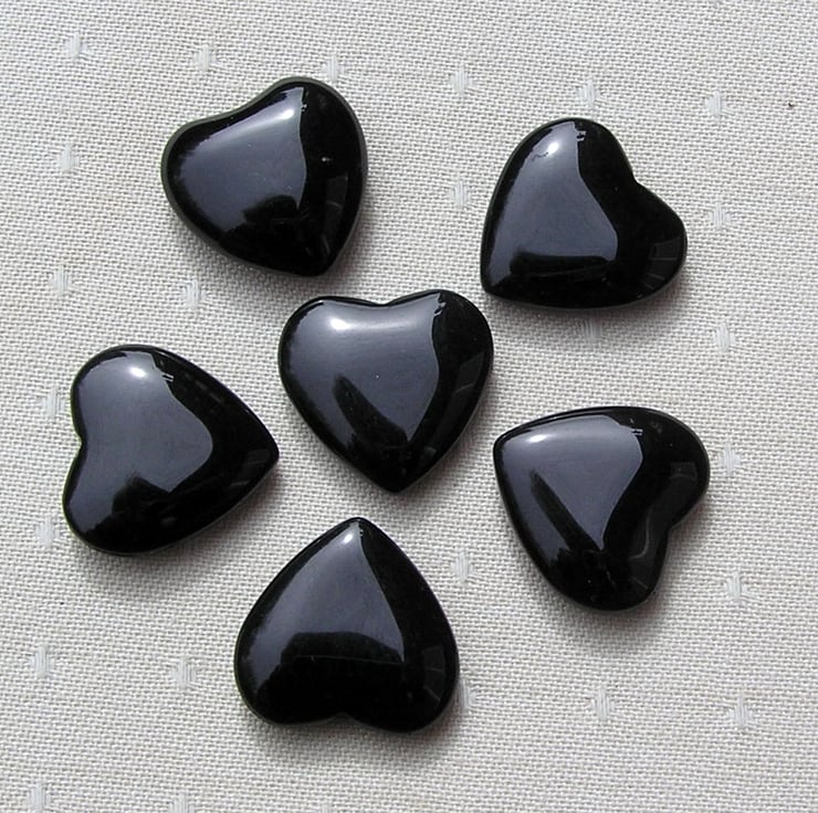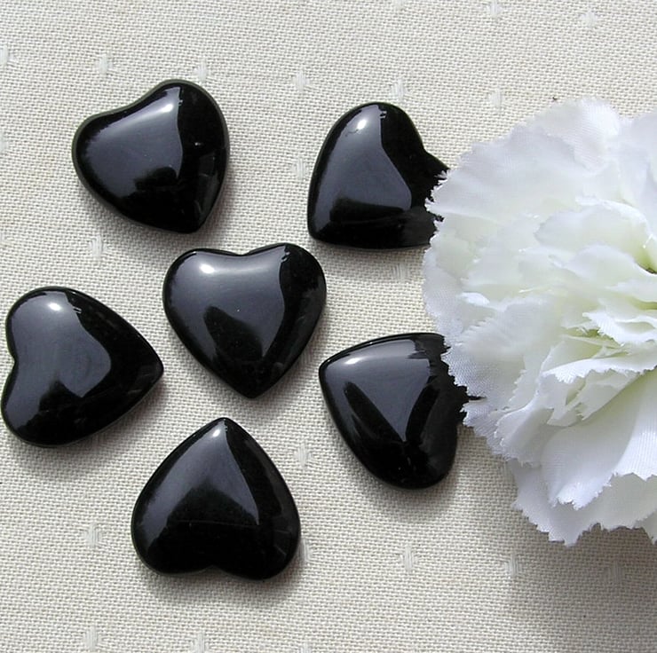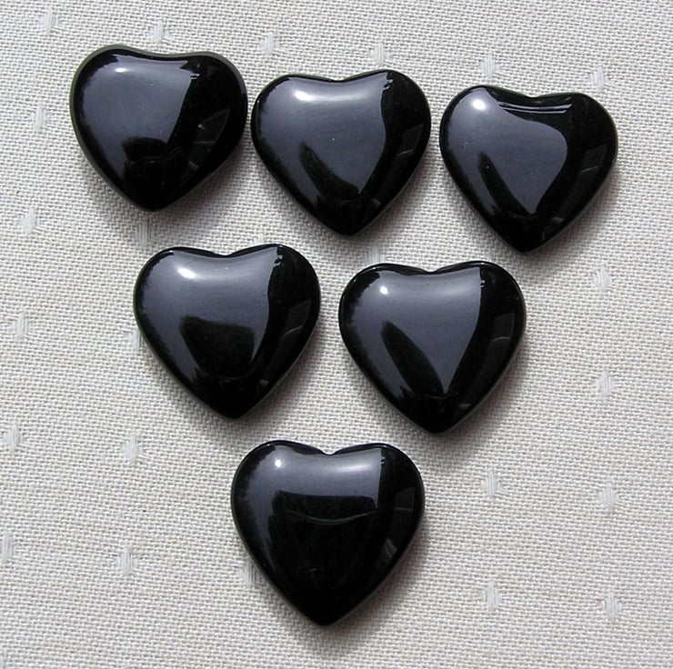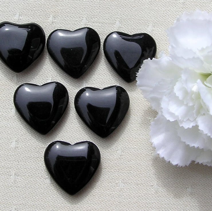 6 Black Obsidian Solid Gemstone Polished Hearts - 20mm - Chakra - Crafting