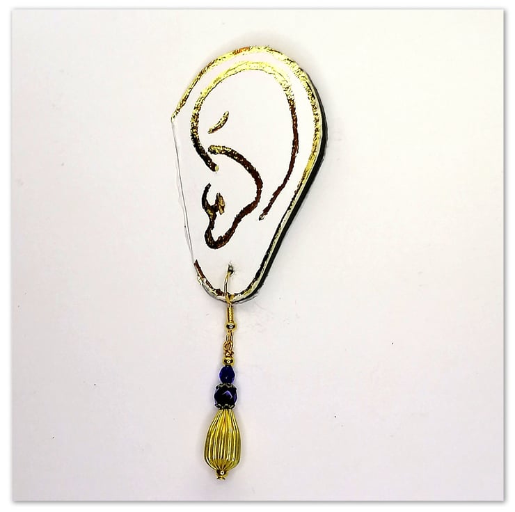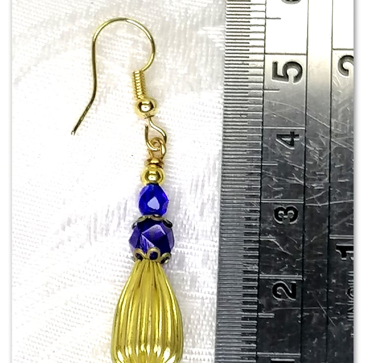 Elegant handmade Gold-plated earrings with dark blue glass crystal beads