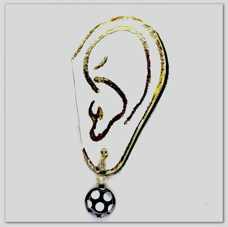 Handmade Glass bead earrings with metallic spot pattern on silver plated posts.