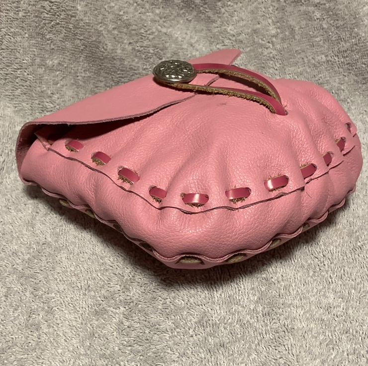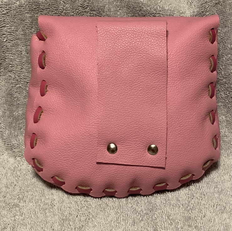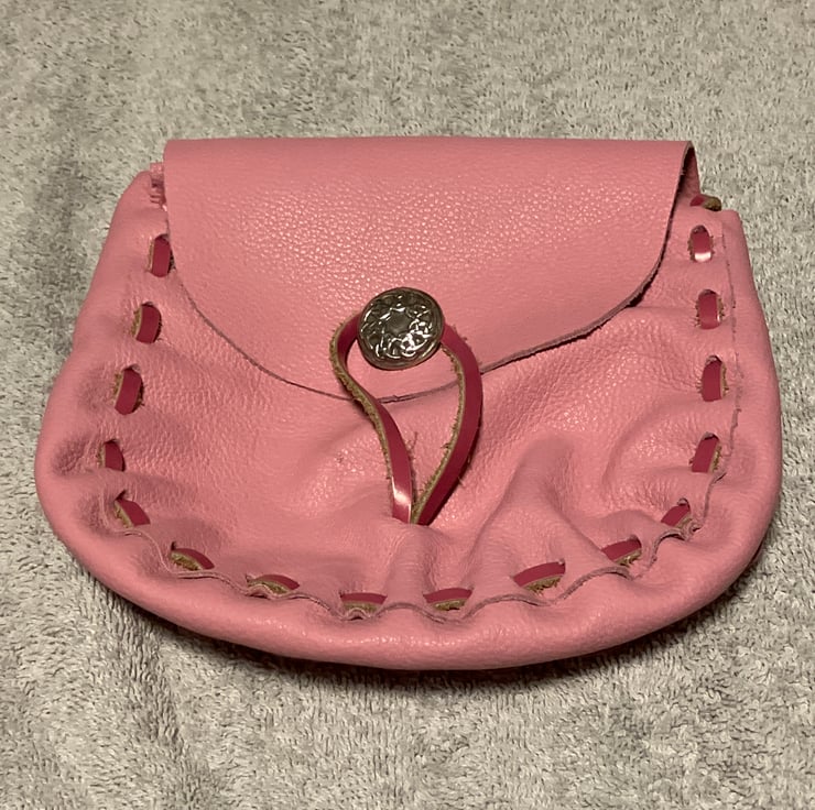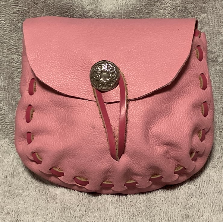 Bubblegum Pink coloured Leather Medieval - Style Pouch - with nickel plated Celtic Knotwork button closure