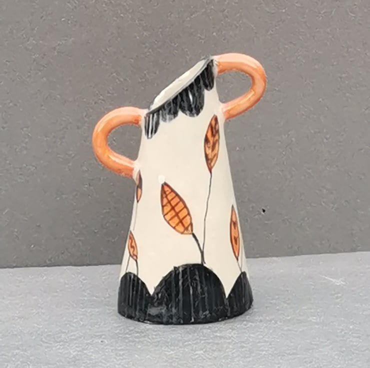 Stoneware vase with hand-painted design by Kathleen Hepworth