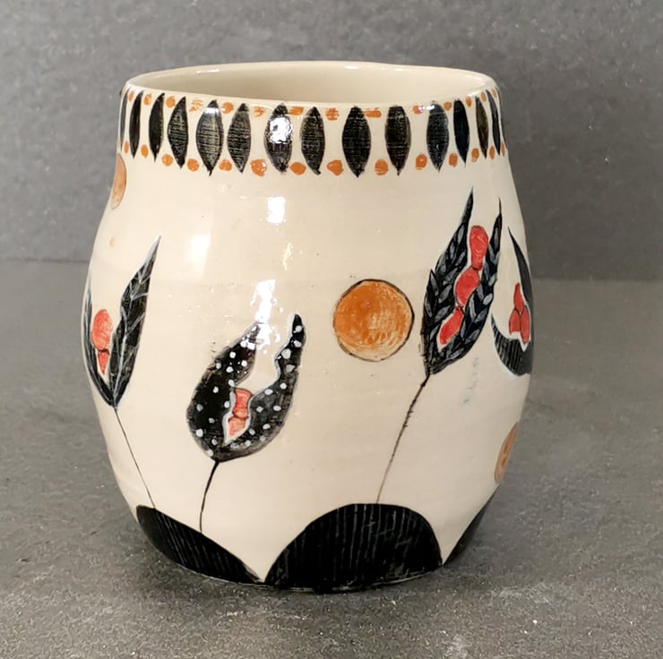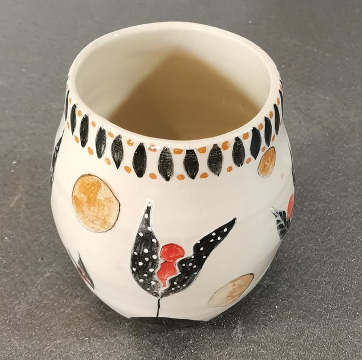 Stoneware bowl or vase with hand-painted design by Kathleen Hepworth