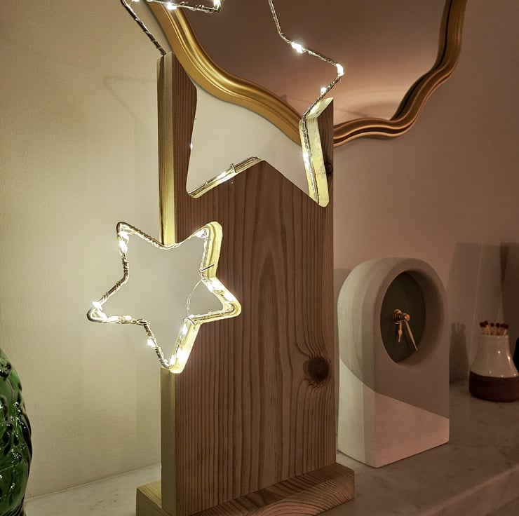 Add a touch of starlit warmth to your home this Christmas with this timeless wooden LED decoration.