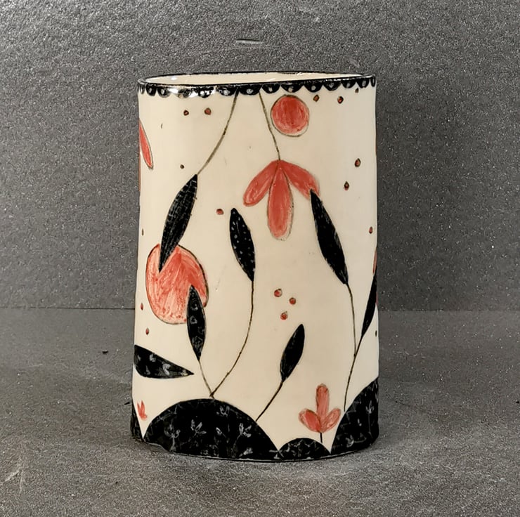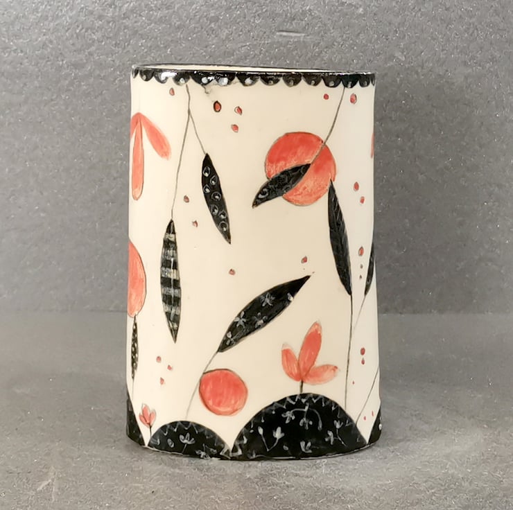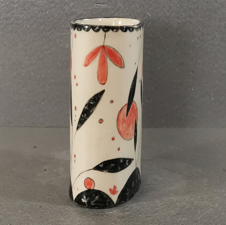 Stoneware vase with hand-painted design by Kathleen Hepworth