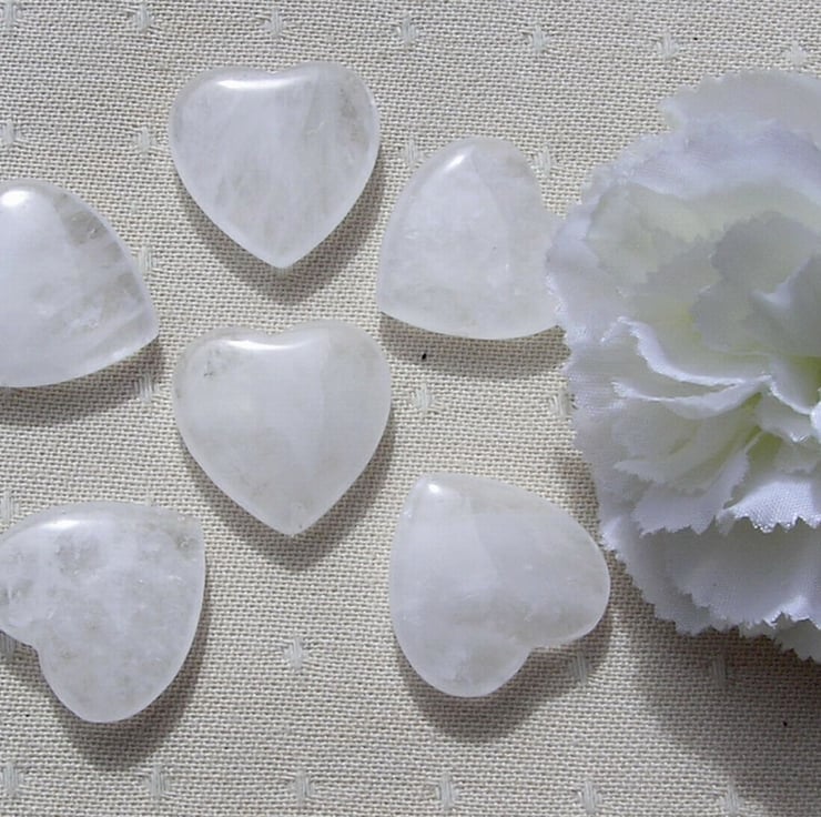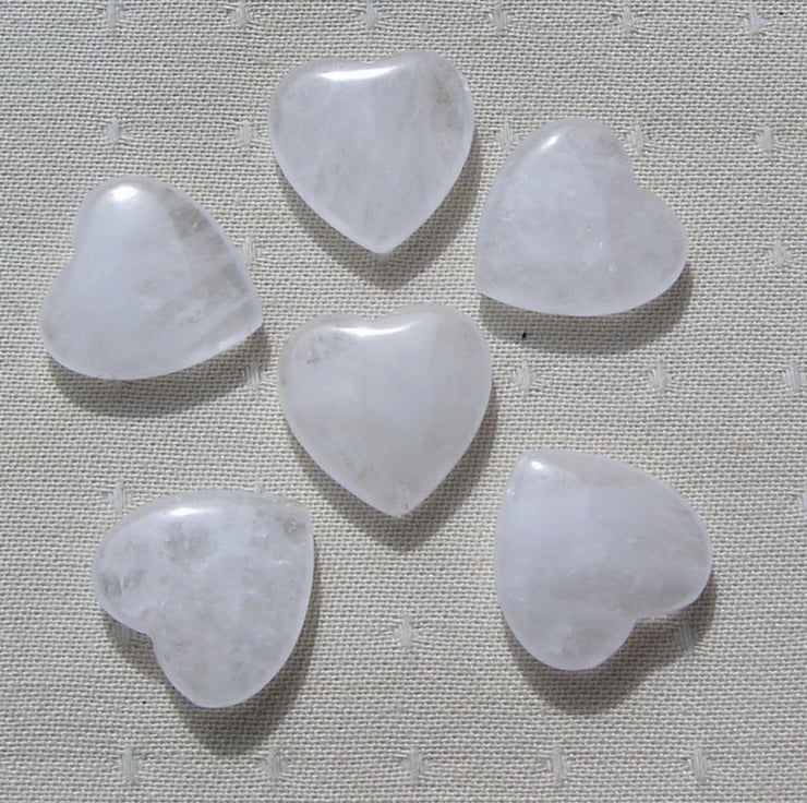 6 (Six) Beautiful Clear Quartz Solid Gemstone Crystal Hearts
