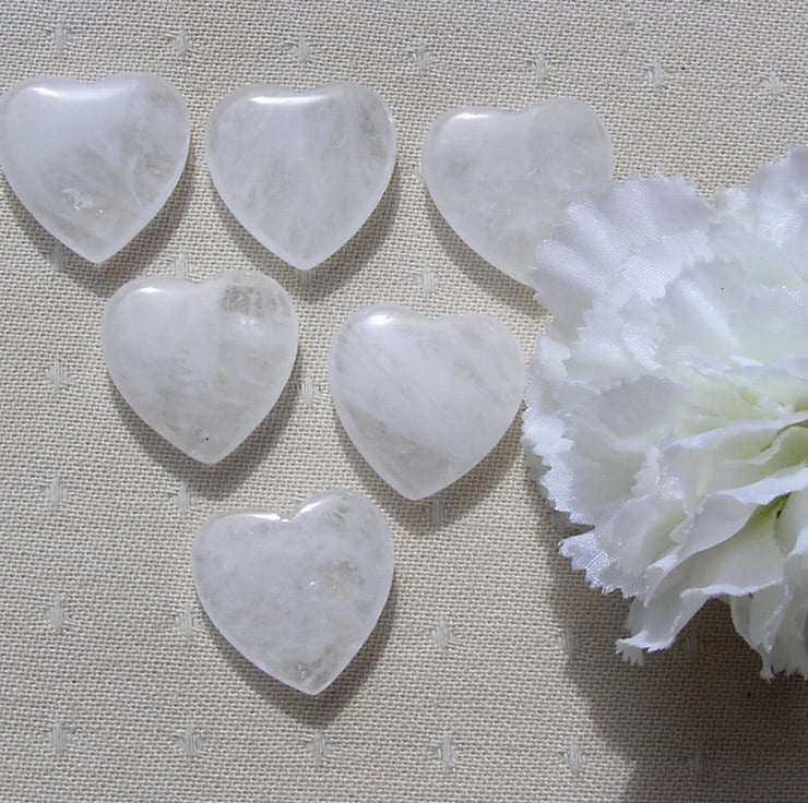 6 Clear Quartz Solid Gemstone Polished Hearts - 20mm - Chakra - Crafting