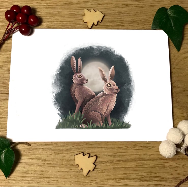 4.13" x 5.82" (105mm x 148mm) - landscape thick 340gsm card, sustainably sourced paper stock. With a light satin coating on the outside, the inside is left uncoated, making it easier for you to write your own message.