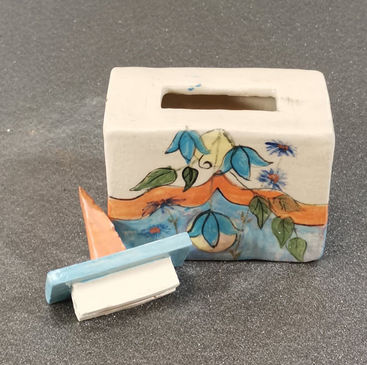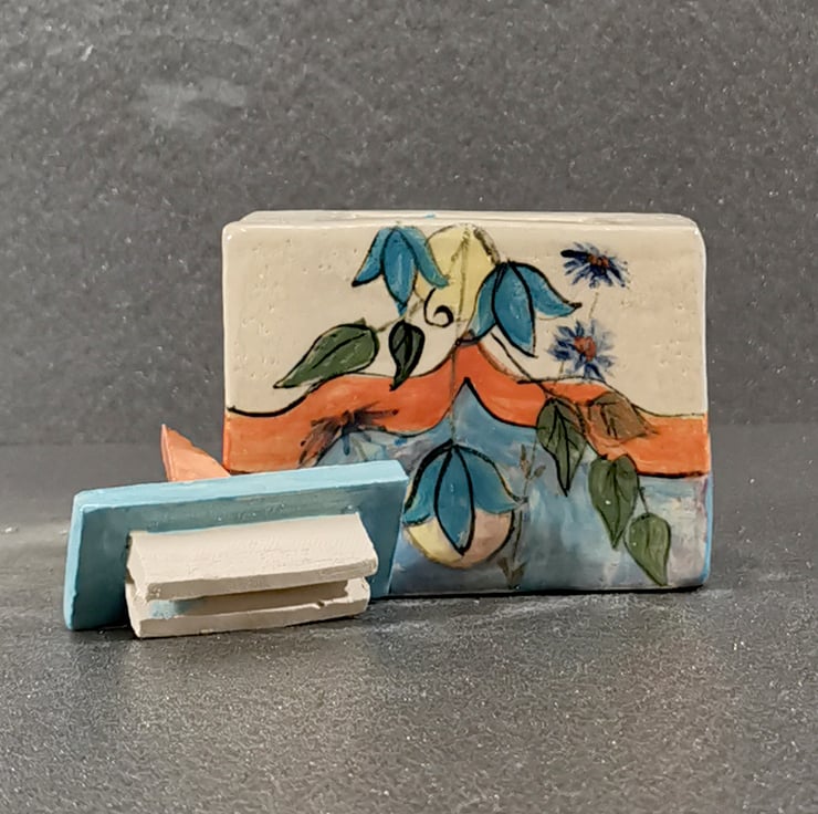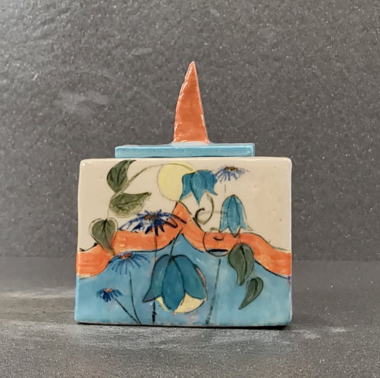 Stoneware glazed Keepsake Box with hand-painted design by Kathleen Hepworth