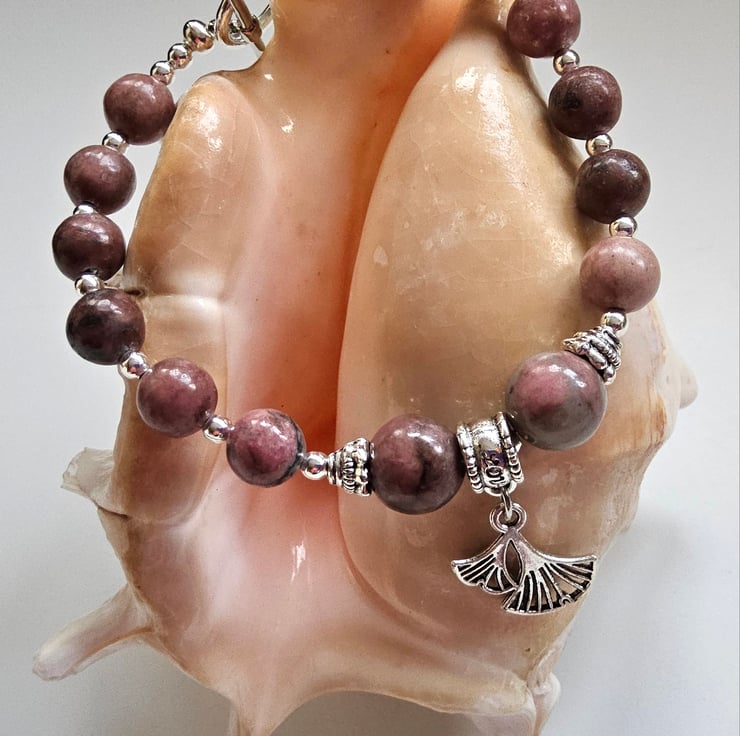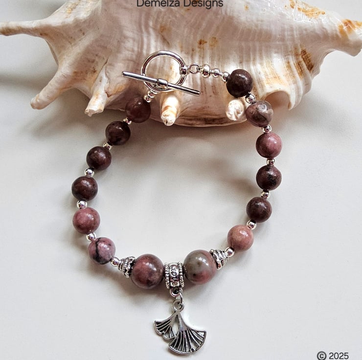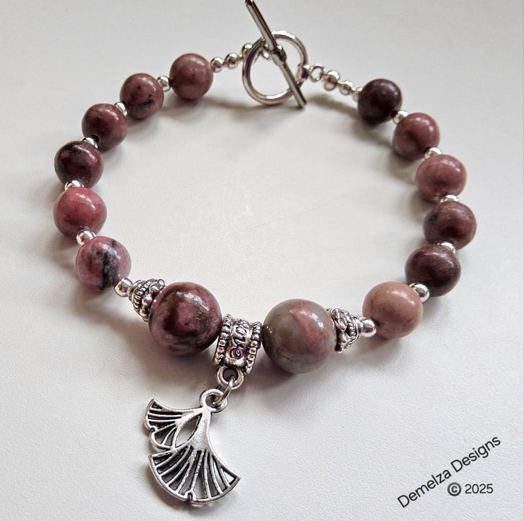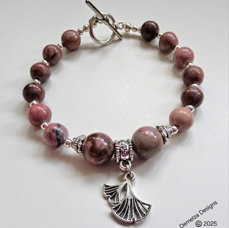 This rhodochrosite bracelet has been designed and hand crafted in Cornwall by Demelza Designs for those looking for meaning in a gemstone, especially in today's everday modern stressful life style.