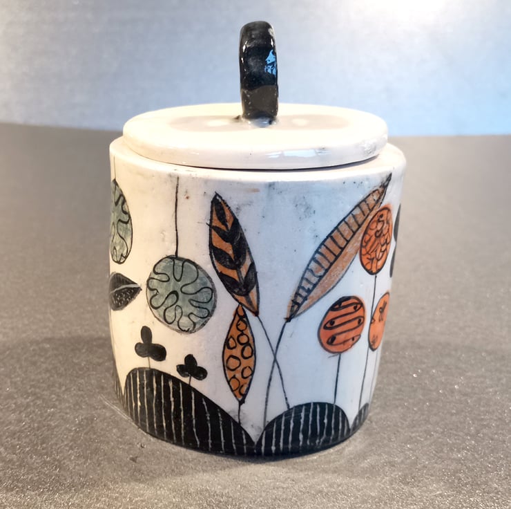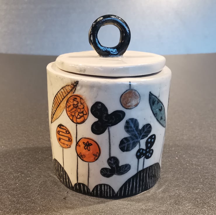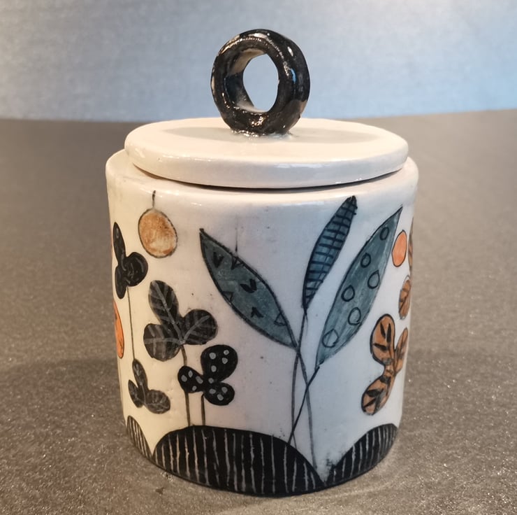 Stoneware glazed Keepsake Box with hand-painted design by Kathleen Hepworth