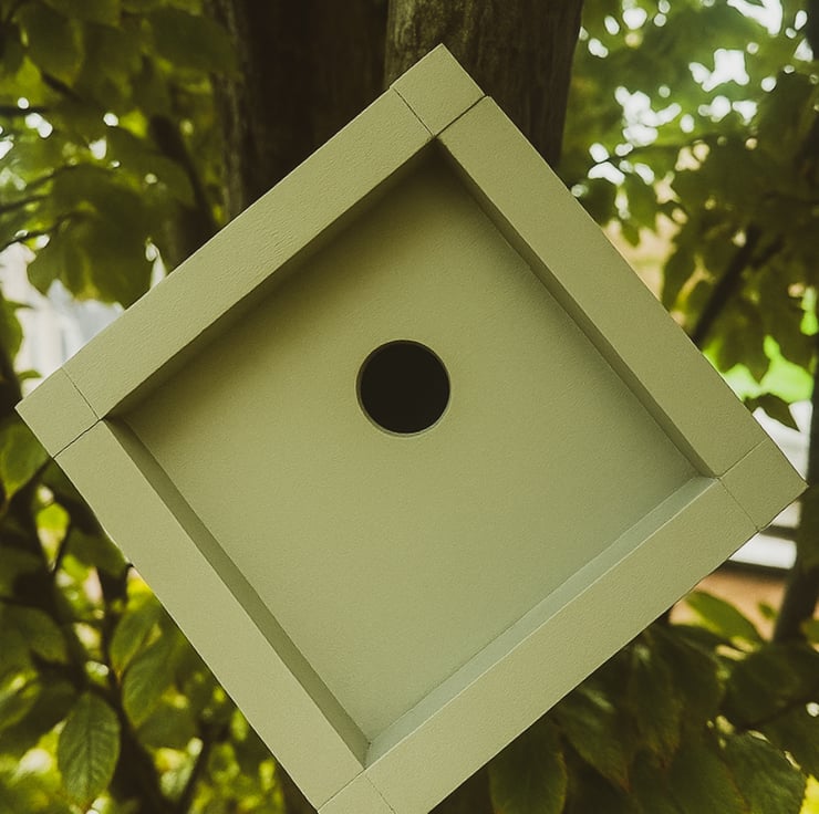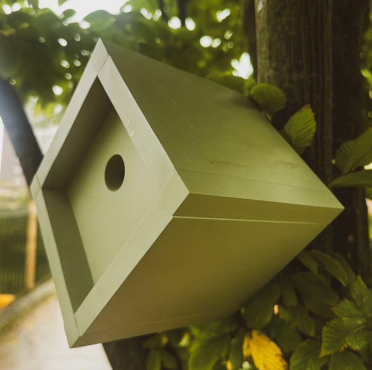 PICTURED IN FORGET ME NOT & CARD ROOM GREEN. Measuring 19 x 19 x 19 cm, it’s compact enough to fit just about anywhere - a fence post, tree trunk, or even under your eaves, but spacious enough to make a comfortable nest site for breeding birds or shelter seekers in colder months.