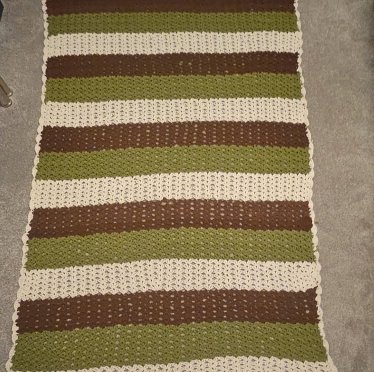 Handmade Crochet Blanket – Cream, Green & Brown Stripes, Single Bed Size